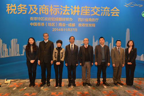 【香港商报讯】记者梅超报道:为了帮助在川港资企业掌握最新内地税务安排以及了解新商标法的内容及相关政策,帮助港商了解相关政策发展对港商带来的机遇及挑战。2014年11月27日上午9时30分,由香港特别行政区政府驻成都经济贸易办事处、四川省商务厅、中国香港(地区)商会-成都和香港贸易发展局共同主办的税务及商标法讲座交流会在成都香格里拉大酒店举行。据悉,该活动邀请到了普华永道会计师事务所、金杜律师事务所和韬睿惠悦福利咨询公司的业界专家担任演讲嘉宾,与在川港商分享最新信息,加深对内地政策法规的理解和应对,并解答与会人士提问,以帮助香港企业改善税务业务以及更好的理解和适用新商标法。香港特区政府驻成都经贸办主任刘锦泉出席交流会并致辞。