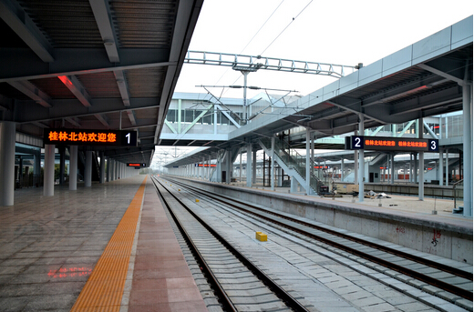 據中鐵二局桂林北站改造升級項目部黨委書記張帥介紹,貴廣高鐵的到來,桂林北站迎來“華麗轉身”。為滿足貴廣高鐵的開行,今年3月,桂林北站改造工程正式啟動,歷時8個月的建設,車站由原來的2站臺7股道擴容成為16站臺18股道,“小站”也有了“高鐵范兒”。貴廣高鐵的通車,將貴陽與桂林連在了一起,高鐵車程僅2個多小時,而桂林北站,將成為進入桂林的“高鐵門戶”。