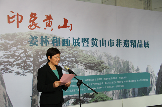 【香港商報網訊】記者吳敏 通訊員葉軍報道:“借珠海市古元美術館這方寶地,我們共同舉辦‘印象黃山•薑林和先生畫展暨黃山市非物質文化遺產精品展’,既是‘百山之城’黃山與‘百島之市’珠海的一次親密接觸,更是藍色珠海與綠色黃山、浪漫海文化與古典徽文化又一次跨越時空的牽手。”在日前於珠海市舉行的“印象黃山•薑林和畫展暨黃山市非遺精品展”開展儀式上,中共黃山市委宣傳部長蔡建軍女士如是由衷感歎。