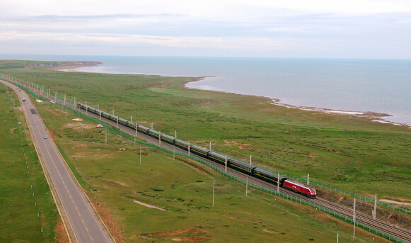【香港商報網訊】記者何雯報道:12月10日,中國鐵路實行新的列車運行圖,中午12:30左右,由中國南車株機公司研制的HXD1D型大功率交流傳動客運電力機車,在蘭州牽引T27次列車(16個車廂、標準載客約1800人)駛上青藏高原,列車途經青海湖,將于次日凌晨00:25左右抵達1000余公里外的格爾木車站,該機車最高牽引時速可達160公里,是世界屋脊最快的火車頭,其“中國紅”的靚麗外形,成為千里戈壁高原一道流動的風景。