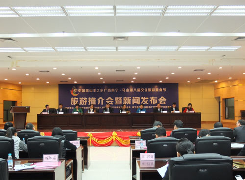 马山第八届文化旅游美食节新闻发布会现场