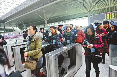 12月17日,首批試乘者進站。本報記者 王錚攝