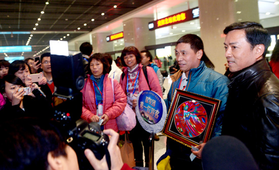 贵州省旅游局为随高铁第一个到达贵州的游客赠送纪念品