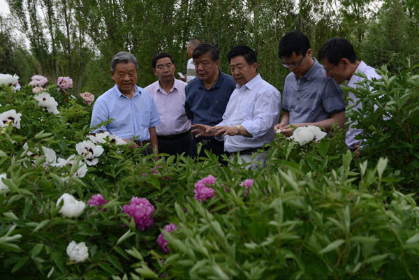 国家林业局原副局长李育才等人在中川牡丹园实地考察