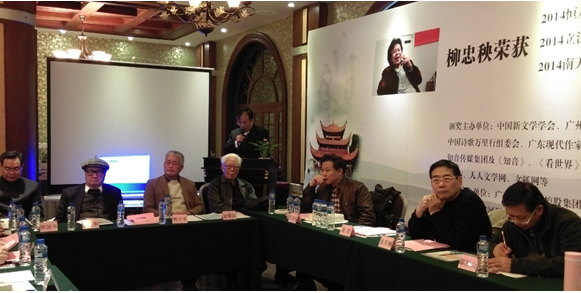 [香港商报网讯] 12月28日,由中国新文学学会、广州国际中华文化学术交流协会等单位主办的民间诗歌奖颁奖晚会在广州举行。三家企业现场宣布,向草根诗人柳忠秧颁发“2014恒基伟业杯中华诗歌年度人物奖”、“2014立沃杯中华诗歌年度贡献奖”和“2014南天文化杯中华诗歌艺术创新奖”荣誉大奖。