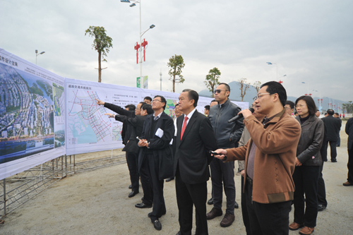 惠州市领导嘉宾在听取稔山滨海新城起步区规划情况介绍