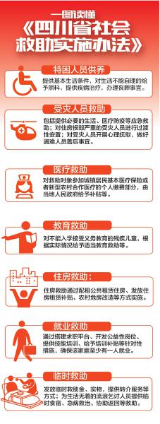 《办法》对最低生活保障、特困人员供养、受灾人员救助、医疗救助、教育救助、住房救助、就业救助、临时救助等做出规定。