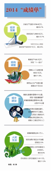 剛剛過去的2014年,面對復雜嚴峻的國內外發展環境,全省上下按照“發展升級、小康提速、綠色崛起、實干興贛”十六字方針,堅持穩中求進,改革創新,統籌做好穩增長、促改革、調結構、惠民生各項工作,較好地完成了省十二屆人大三次會議確定的主要目標任務。