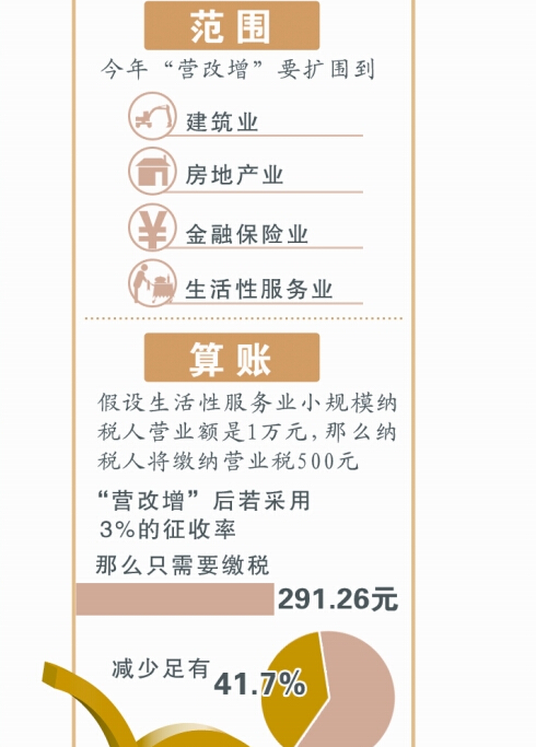 今年,“營改增”要擴圍到建筑業、房地產業、金融保險業和生活性服務業。