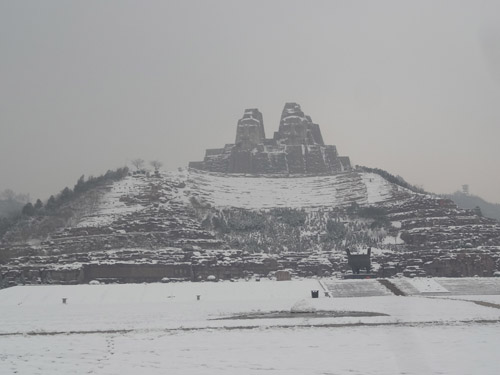 炎黄二帝巨塑雪景