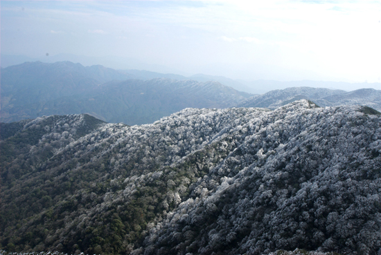 [香港商報訊] 通訊員 李雪 記者 黃慶松 報導:1月29日,貴州大降溫,被譽為苗族聖山的雷公山出現迷人霧凇。當天,近千名遊客和雷山苗族同胞湧向海拔2178.8米的雷公山山頂看雪景。