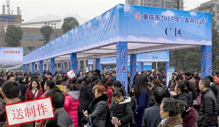 重慶商報訊 昨日上午,我市2015年“春風行動”啟動儀式暨現場招聘會在璧山區文體廣場舉行。據悉,整個招聘活動將持續一個月,共有900餘場招聘會,將提供崗位106萬個供你選。昨日,共有91家用人單位提供了5081個崗位,不少返鄉農民工來到招聘現場找工作。