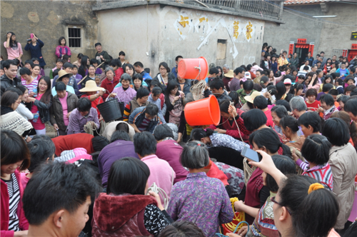 “搶神水”是墨園村鬧元宵活動中最隆重的節目之一。上元清醮儀式之后,就開始搶“神水”,神水就是“八卦葫蘆井”的水,寓意把平安、福氣帶回家中。