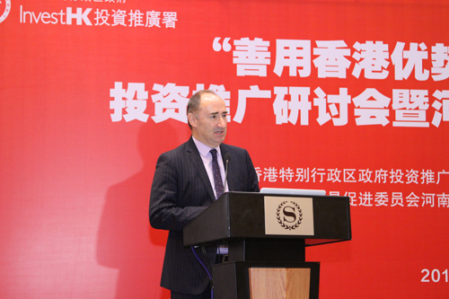 此次研討會由河南省政府港澳事務辦公室與河南省商務廳共同主辦,中國國際貿易促進委員會河南省委員會以及河南省工商業聯合會聯合協辦。主要展示了香港在營商環境及現代服務業上的優勢,讓河南企業充分瞭解香港作為拓展海外市場的重要平臺角色。投資推廣署署長賈沛年與河南省人民政府副省長李亞出席並致歡迎辭。