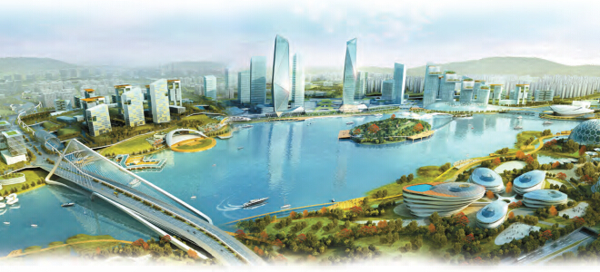 規劃總面積達123平方公里、規劃總人口約50萬人的知識城,在廣州東部山水新城總體規劃中被定位為核心功能區,通過借鑒新加坡濱海灣新區建設經驗,近期重點完成約32平方公里「知識城主城區」的規劃,重點開發建設其中約16平方公里的「主城區核心區」,包括九龍新城、九龍湖環湖區、創新集聚區和南起步區。