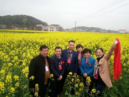 娄底市委常委、宣传部长伍美华(右二)等嘉宾亦被壮观的油菜花海陶醉