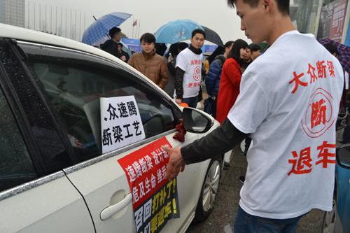 “问题车展”主办方、湖南交通频道负责人董晓介绍,在长沙,大约有500名速腾车主。“因为共同的维权目标,他们走到了一起。”