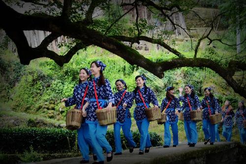 【香港商报网讯】记者郭美勤 通讯员王以之报道: “何极绿满川茗生狗牯脑,恰似春醪醉温泉流不歇!”3月8日,遂川县汤湖镇狗牯脑山头上,登山比赛率先登顶的女演员张敏诗兴大发。因为有了一队队穿着五颜六色的登山观光游客,节日里的美丽茶山显得分外美丽而灵动。茶山脚下、甚至车站、机场,也常能看见穿着蓝布衫的采茶姑娘在曼妙的茶歌音乐中表演茶艺。