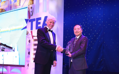 [香港商報網訊]記者陸紹龍報道:記者從珠海長隆國際海洋度假區獲悉,北京時間2015年3月22日早晨(美國洛杉磯當地時間3月21日晚),第21屆世界主題娛樂協會年度頒獎晚宴在美國洛杉磯阿納海姆區迪士尼酒店隆重舉行。長隆集團總裁陳萬成代表長隆集團旗下的橫琴長隆海洋王國領取了TEA全球主題娛樂協會2014年度唯一的“主題公園傑出成就獎”。