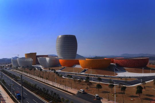 醴陵?世界陶瓷藝術城揭牌,是此次瓷博會的重頭戲。醴陵?世界陶瓷藝術城由世界著名的意大利阿克雅Archea建筑師事務所設計,并由其首席設計師迪斯特羅?安德里亞ANDREA EESTRO親自主持,歷時三年、五至醴陵、九易其稿而設計完成。藝術城以陶瓷器皿作為建筑外觀,杯杯碗碗、壇壇罐罐,星羅棋布、錯落有致,共同構成別致而生動的整體外觀群象,被稱為“是當今中國體量最大的異形建筑群,堪比悉尼歌劇院的地標性偉大建筑。”