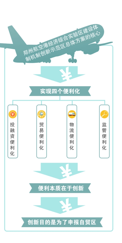 2月28日,《中共河南省委辦公廳河南省人民政府辦公廳關于鄭州航空港經濟綜合實驗區建設體制機制創新示范區總體方案》(以下簡稱《方案》)正式出臺,提出實驗區要在投融資、貿易、物流、監管四個方面創新發展。