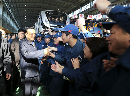 10日,北车集团长春轨道客车股份有限公司的装备车间欢声雷动,工人们打出“感谢超级推销员”的字板,争相与正在这里考察的李克强总理握手问好。总理说,中国装备去国际市场上竞争,你们一定确保装备质量,让关键技术入脑入心,把每个步骤和程序精确到位。