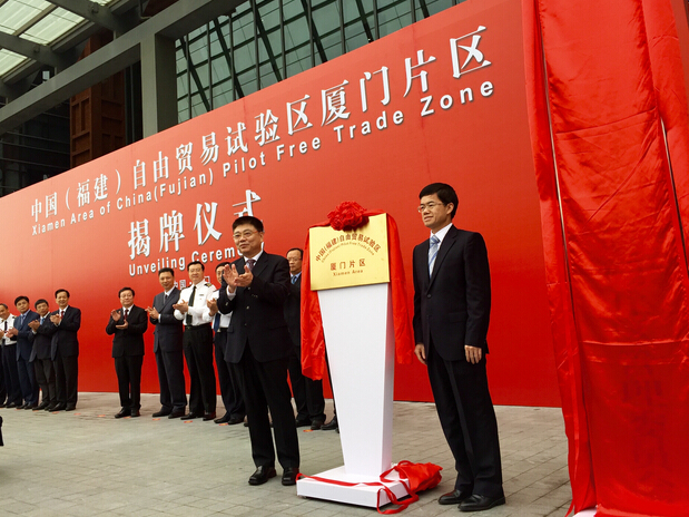福建省委常委、廈門市委書記王蒙徽在揭牌儀式上致辭。他說,中國(福建)自由貿易試驗區廈門片區揭牌是廈門經濟特區發展史上的一件具有里程碑意義的大事,標志著廈門自貿試驗區建設全面啟動。廈門片區一定要立足實際,充分發揮對臺優勢和特色,積極融入國家“一帶一路”戰略,率先探索深化兩岸交流合作的新模式、新途徑和新領域,努力建成投資環境國際化的實驗區和兩岸投資貿易便利化的先行區。
