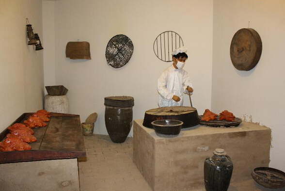 博物館總占地面積為5100平米,共三層,擬設6個展廳。截至目前為止,一樓內部的景物制作已完成60%,剩余部分還在緊張的制作中。一層面積為2000平方米,分為序廳、雞文化展區、農家院和熏雞溯源四個展廳。二層面積為2000平方米,擬設三個展廳:熏雞飄香、熏雞經濟和熏雞工藝,目前正在設計建設中。三層面積為1100平方米,設計建設熏雞展示及品嘗區。二樓和三樓一共擬設四個展廳,還在設計建設中。現在建設的是8家熏雞加工大戶的銷售和展示區。博物館預計明年全部竣工,之后即可對外開放。