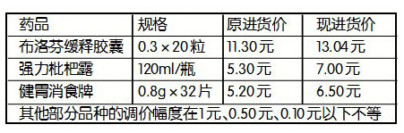 一年來,從全省各地定點監測藥店上報的30種重點監測的非處方藥品價格匯總數據來看,有9種價格較低的非處方藥生產企業調高了藥品的供貨價(即按日均費用標準:西藥不超過3元,中成藥不超過5元)。大部分零售藥店的價格都保持穩定,少部分藥店的部分品種價格有所調整。