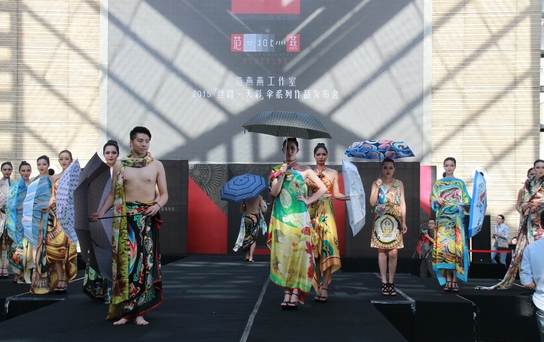 范燕燕“絲路--天彩”傘系列作品發布會現場。 本報記者 王寶雲攝影