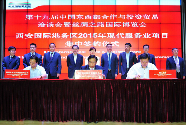 【香港商報網訊】記者付博、胡秦玉報道:25日,在第十九屆西洽會暨絲博會期間,西安國際港務區舉行了2015年現代服務業項目集中簽約儀式。
