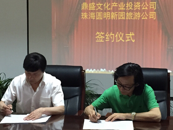 [香港商報網訊] 記者陸紹龍報道:近日,珠海圓明新園與河北承德鼎盛文化產業投資有限公司簽訂合約。根據約定,雙方將從廣告資源互換、網絡平臺、微博(微信)交互宣傳、優秀演職人員互派學習交流,以達到相互學習、共同提升的目的,標志著國內旅游業南北企業首次合作發展中國傳統文化“統一戰線”的結成。