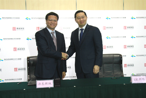 GE照明亚太区总裁吴鸿仁与沣东新城管委会主任康军签署合作备忘录.