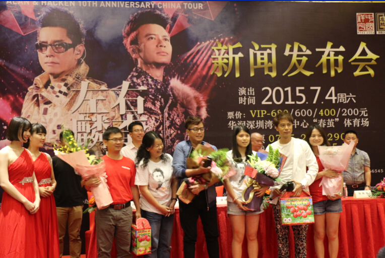 6月4日,華語樂壇天王巨星譚詠麟和實力派偶像唱將李克勤現身深圳萬豪酒店,為他們將於7月4日在深圳舉行的“左麟右李”2015十周年中國巡回金曲演唱會安可場(深圳站)宣傳造勢,演唱會由中國祥宇文化發展有限公司廣州分公司榮譽钜獻,直追香港紅館演唱會票價,最高票價680元人民幣,開票以來票房大賣。這是繼成功舉辦了“左麟右李”2015十周年演唱會東莞站和南寧站之後,祥宇公司又一巨作,聯手“左麟右李”答謝全球歌迷粉絲。樂壇常青的至尊組合“左麟右李”演唱會,譚詠麟和李克勤評價是“一場抵三場”,歌迷粉絲更是認為“看一場少一場”,作為有可能的唯一一場的安可場,深圳站當然不可錯過,何況是“全國最低票價”。