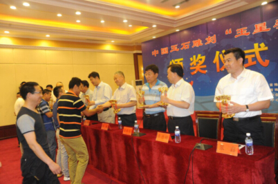 與會領導給獲獎者頒發獎杯
