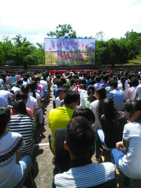 江華縣教育局有關負責人告訴記者,中南大學是國家985工程和首批211工程大學,在2014年,對口幫扶了該縣濤圩中學和水口中心小學。江華縣是國家扶貧開發重點縣、少數民族縣,全縣有5萬貧困人口,絕大部分學生來自農村,家庭條件不好,再加上一些天災人禍,使得一些學生家庭貧困,無力負擔學生讀書的費用。全縣7萬余名學生,現有貧困學生8000余人。