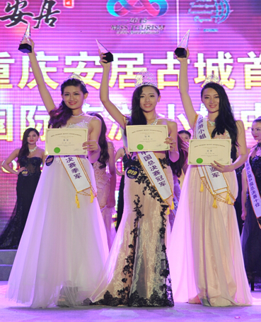 【香港商報網訊】6月21日晚,2015重慶安居古城首屆旅游節暨國際旅游小姐中國總決賽頒獎盛典在重慶銅梁安居古城舉行。來自全國各地的50余名參賽佳麗,經過活力裝、泳裝、晚裝等環節角逐。最終來自山東的選手孫嘉希獲得冠軍, 浙江選手徐夢瑤獲得亞軍, 江蘇選手朱健獲得季軍。