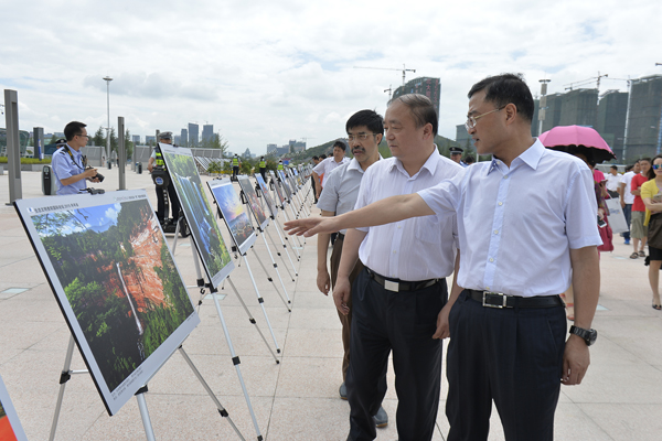 张广智、陈鸣明等省领导参观“桥”瞧贵州摄影展。