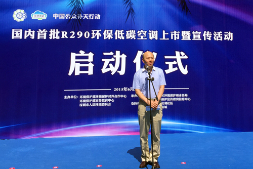 中国环境保护部环境保护对外合作中心副主任肖学智在启动仪式上讲话。