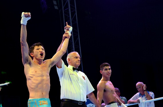 本場比賽共8位世界頂級拳手參賽,共四輪對決。49公斤級決賽率先展開,哈薩克斯坦拳手扎基波夫與厄瓜多爾拳手邱依波展開了較量。8回合結束后,博爾詹贏得了49公斤級的奧運會入場券,以及APB個人拳王金腰帶。