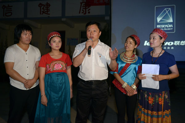 【香港商報網訊】 記者 黃慶松 報道:7月13日,大型公益題材紀錄電影《美麗鄉愁》在貴州省黔東南州黃平縣穀隴鎮大寨村和舊州鎮波洞村分別舉行首映,近千名村民和電影主人公范躍寧、苗族歌後阿幼朵、黔籍影視歌武打明星王飛鴻以及苗族青年女歌手歐桑一起,在家門口從電影上看到自己平日裏的生活和工作狀態。