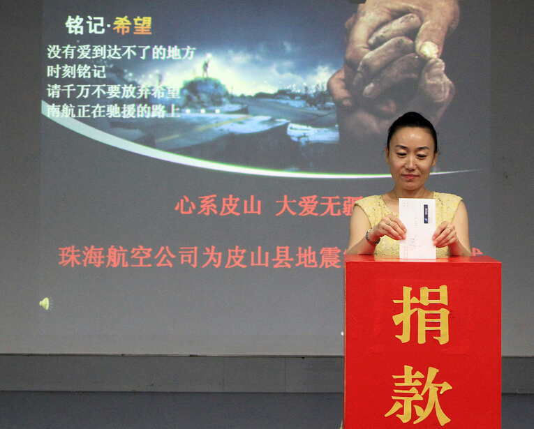 7月14日—16日,南航珠海公司再度發起愛心捐贈活動,公司全體員工踴躍為新疆皮山縣地震災區捐款。7月14日上午舉辦了捐款啟動儀式,公司領導、機關單位幹部帶頭響應,僅10分鍾捐贈現金12700元。隨後,貨運部、地面服務保障部等一線單位紛紛響應號召,先後在機場組織捐款活動。