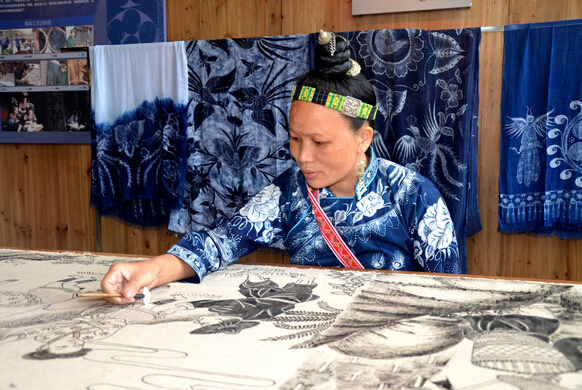 匠人在展示國家級非物質文化遺產“苗族蠟染”的制作過程