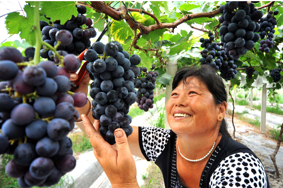 農民周成麗喜摘豐收葡萄