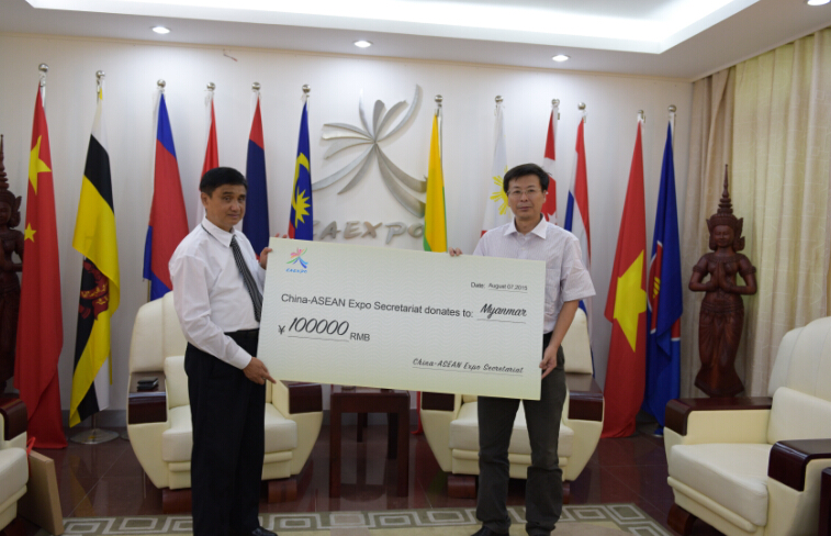 【香港商報網訊】實習記者黎冉升報道:日前,中國-東博會秘書處通過緬甸駐廣西南寧總領事館向緬甸災區捐贈10萬元人民幣,幫助災區民眾渡過難關。緬甸駐南寧總領事吳敏吞代表緬方接受了該筆捐贈。
