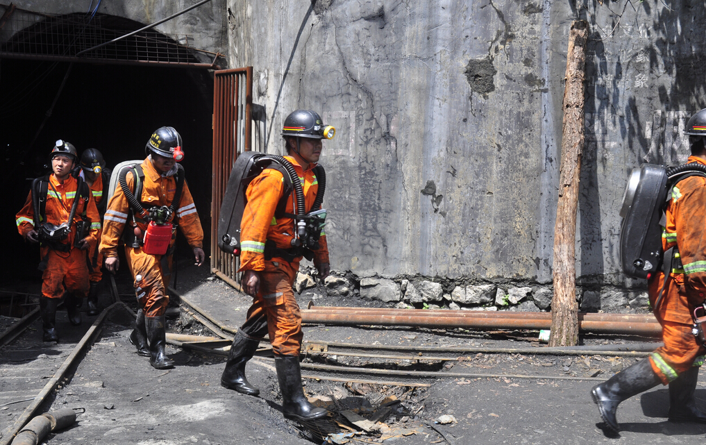 現場救援人員走出事故礦井