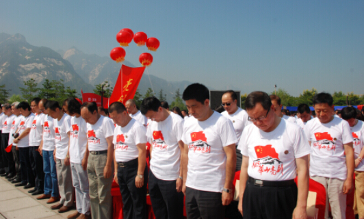 七十年多年前,中華兒女戮力同心,同仇敵愾,用血與火的生死之博換來了1945年8月15日偉大的勝利。戰爭遠去,硝煙散去,英雄長眠,精神不朽。70年后的今天,亮劍華山,陜西各界3000余人紀念抗戰勝利70周年,共同來傳承和發揚中國精神。上午10點,活動一開始,在威武雄壯的《義勇軍進行曲》中,現場所有的人起立,向為將侵略者逐出國門的英雄和英魂致敬,同時為天津濱海新區爆炸事故及陜西山陽山體滑坡中犧牲的同胞默哀一分鐘。