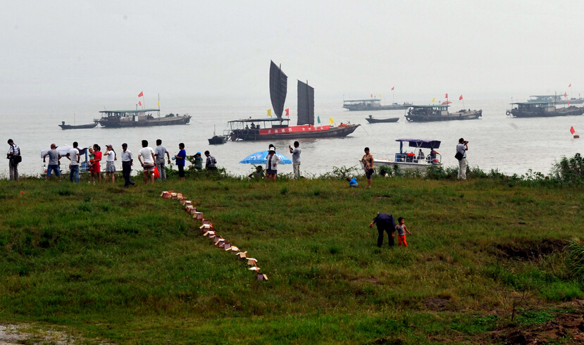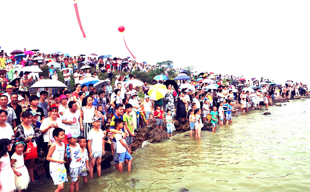 萬人涌動巢湖南岸廬江白山鎮廟嘴湖岸觀看開湖節精彩活動。