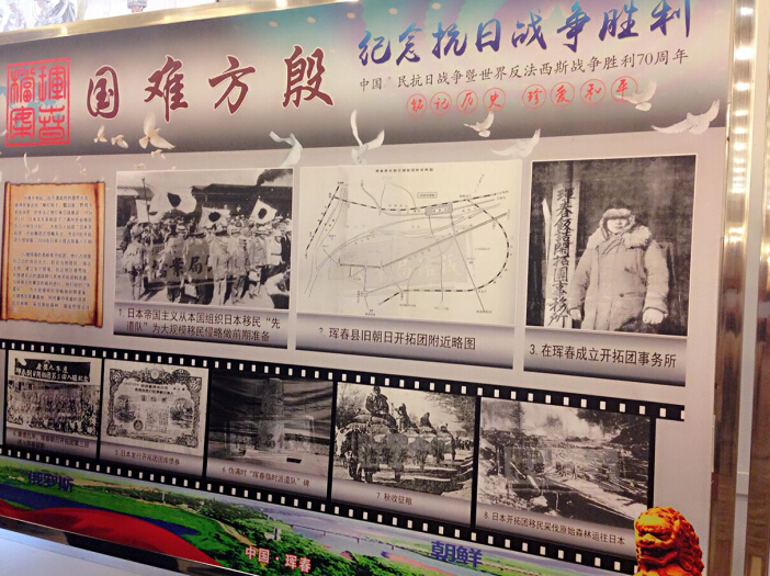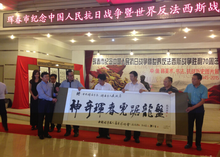 【香港商報網訊】實習記者于汐凝報道:8月15日,是第二次世界大戰日本無條件投降的日子,以“紀念中國人民抗日戰爭暨世界反法西斯戰爭勝利70周年”為主題的中俄韓美術、書法、抗戰歷史圖片展以及“和平東北亞,同唱一首歌”文藝晚會在琿春市舉行。