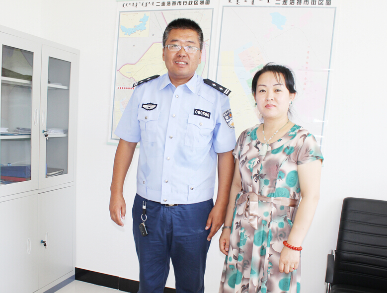 二連浩特公安局副局長、交警大隊隊長董智明接受本報記者王思娜采訪